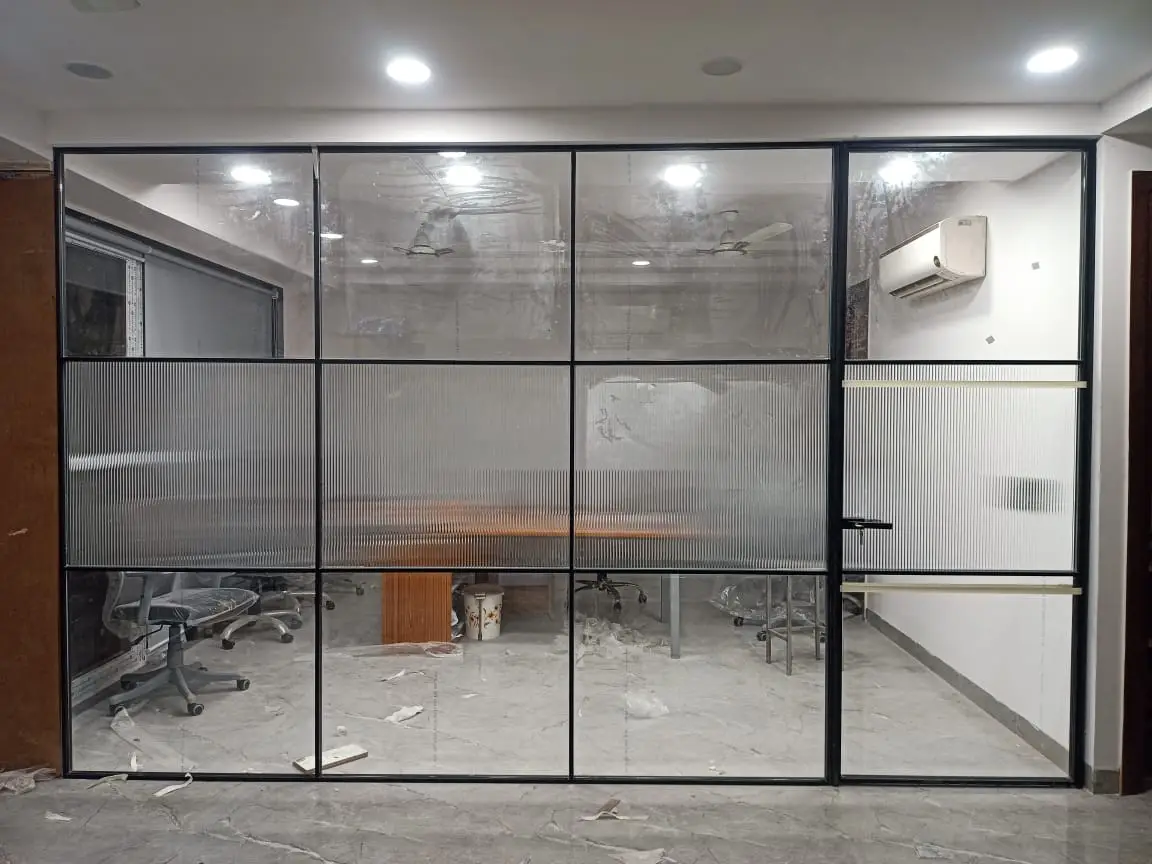 Aluminium Slim Profile Cabins are modern glass enclosures made with ultra-thin aluminium frames and toughened glass panels. They provide a seamless, open look — maximizing natural light and creating a professional work environment without compromising privacy or strength.